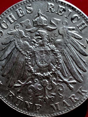 DEUTSCHES REICH 1914 FUNF MARK WILHELM II DEUTSCHER KEISER KONIG VON PREUSSEN |