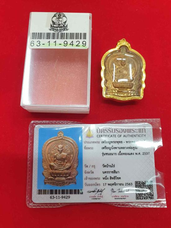 เหรียญนั่งพานรุ่นชนะมาร ปี 37 เนื้อทองแดง รวมโค๊ต 1 ใน 232 เหรียญ เลื่ยมทองแท้
