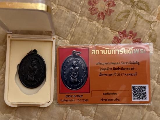ลงไหม่เคาะเดียวแดง เหรียญหลวงพ่อแดง วัดเขาบันไดอิฐ รุ่นสุดท้าย พิมพ์บล็อคทองคำ เนื้อทองแดง ปี2517 จ.เพชรบุรี สภาพสวยๆนิยม พร้อมบัตรสมาคม