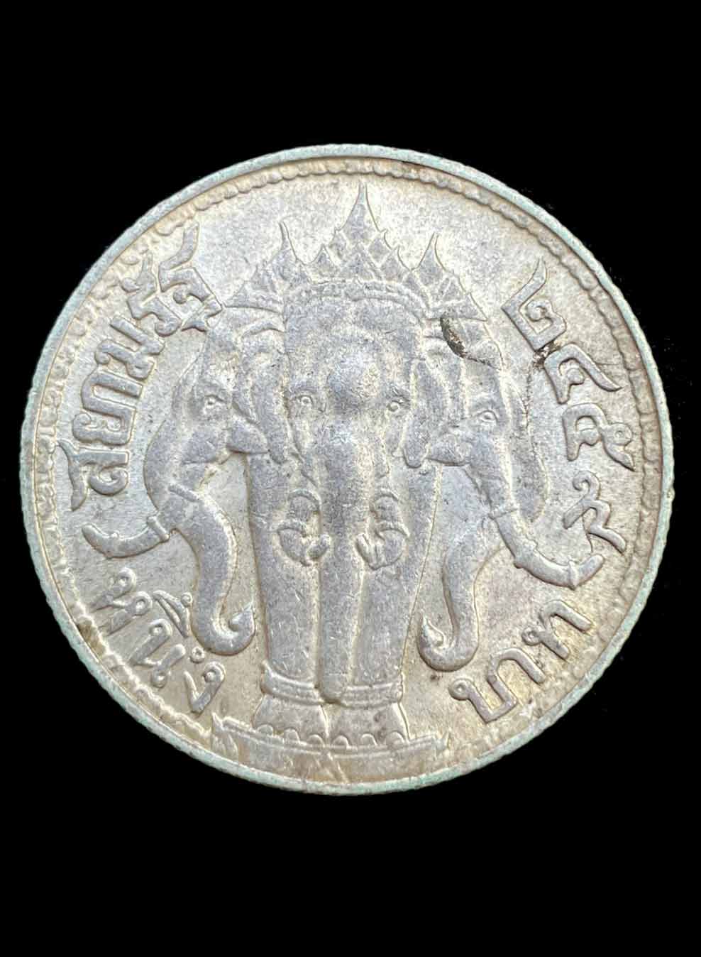 เหรียญเงิน 1 บาท รัชกาลที่ 6 หลังช้างสามเศียร ปี 2459 เนื้อเงิน (น้ำหนัก 15 กรัม)
