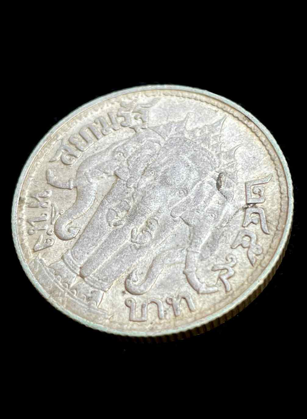 วัดใจ เหรียญเงิน 1 บาท รัชกาลที่ 6 หลังช้างสามเศียร ปี 2459 เนื้อเงิน (น้ำหนัก 15 กรัม) # 21 |