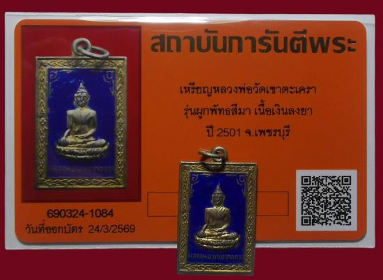 เหรียญแสตมป์ ลพ.วัดเขาตะเครา เนื้อเงินลงยา ปี2501 จ.เพชรบุรี *หายากมาก* พร้อมบัตรรับรอง