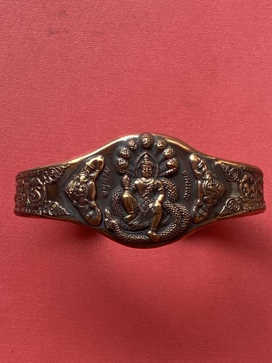 เคาะเดียวแดง กำไล องค์พ่อจตุคาม-รามเทพ รุ่นมงคลจักรวาล เนื้อสำริด เลข 534 |