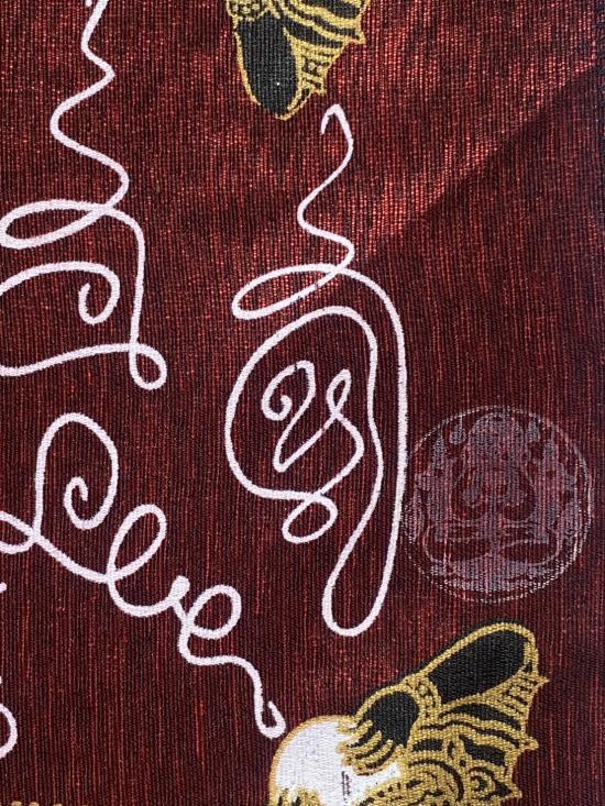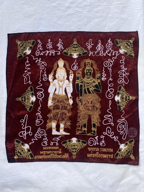 เคาะเดียวแดง ผ้ายันต์ พระพรหม พระนารายณ์ มิ่งมงคล รุ่นมงคลจักวาล ขนาด40/40ซม สีแดง มีตราประทับ-มีรันเลข |