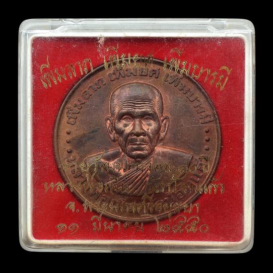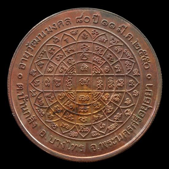 เหรียญ เพิ่มลาภ เพิ่มยศ เพิ่มบารมี อายุวัฒนะมงคล ๘๐ ปี เนื้อทองแดง ปี 2550 หลวงพ่อเพิ่ม วัดป้อมแก้ว จ.พระนครศรีอยุธยา มีกล่องเดิม