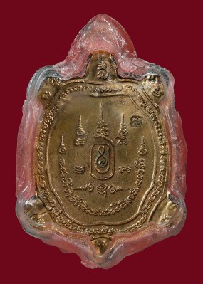..เหรียญพญาเต่าเรือน หลวงปู่หลิว วัดไร่แตงทอง ปี 2538 รุ่นเจ้าสัว เนื้อทองแดง จ.นครปฐม เหรียญพญาเ ต่าเรือน หลวงปู่หลิว รุ่นเจ้าสัว (อายุครบ 90 ปี) ตอกโค๊ต วัดไทรทองพัฒนา จ.กาญจนบุรี ปี 2538 สภาพเดิมๆ สำนักงานสาธารณสุขร่วมจัดสร้าง รุ่นนี้สำนักงานสาธารณสุขจังหวัดกาญจนบุรี และสาธารณสุขอำเภอทุกแห่งในจังหวัดกาญจนบุรีได้ร่วมกับวัดไทรทองพัฒนา กิ่ง อ.ด่านมะขามเตี้ย จ.กาญจนบุรี ได้ทำหนังสือขออนุญาตจัดสร้างวัตถุมงคลรุ่นนี้ขึ้น โดยมีวัตถุประสงค์ที่จะก่อสร้างถาวรวัตถุ เผื่อเป็นอนุสรณ์สถานแด่หลวงปู่หลิวเนื่องในโอกาสอายุครบ 90 ปี หลวงปู่มีเมตตาให้จัดสร้าง ประวัติความเป็นมาชัดเจนมาก สร้างด้วยเนื้อทองคำ เงิน นวะ ทองแดง สร้างตามจำนวนยอดที่สั่งจองไม่มีการสร้างเพิ่มเสริมแต่ประการใด มีพิธีทำลายบล๊อกอย่างเป็นทางการ เต่าเจ้าสัว ความหมายของเต่ารุ่นนี้คือ 1.เต่ากำลังก้าวเดิน หมายถึง ความก้าวหน้า 2.ซุ้ม16 หมายถึง พระเจ้า 16 พระองค์ 3.สังฆาฏิ 3 ชั้น หมายถึง พระรัตนตรัย 4.ฐานบัว 16 ดอก หมายถึง พระเจ้า 16 พระองค์ 5.ดอกไม้ 5 กลีบ หมายถึง พระเจ้า 5 พระองค์