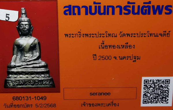 พระกริ่งพระประโทนณ์ วัดพระประโทนณ์เจดีย์ เนื้อทองเหลือง กริ่งดัง ปี2500 จ.นครปฐม + บัตรG-pra สภาพเดิมค่ะ พระสภาพตามรูปทุกประการค่ะ