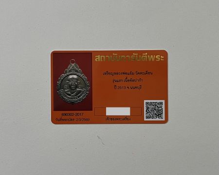 เหรียญหลวงปู่แย้ม วัดตะเคียน รุ่นแรก เนื้ออัลปาก้า ปี 2513 พร้อมบัตรรับรอง G