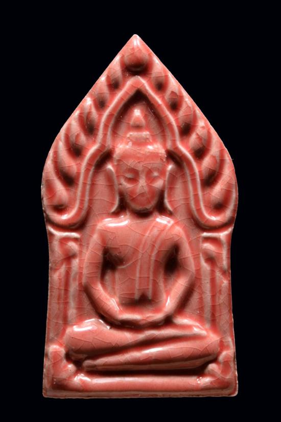 วัดใจ 290.พระขุนแผนเคลือบ สีแดง หลวงปู่ผาด วัดไร่ จ.อ่างทอง |