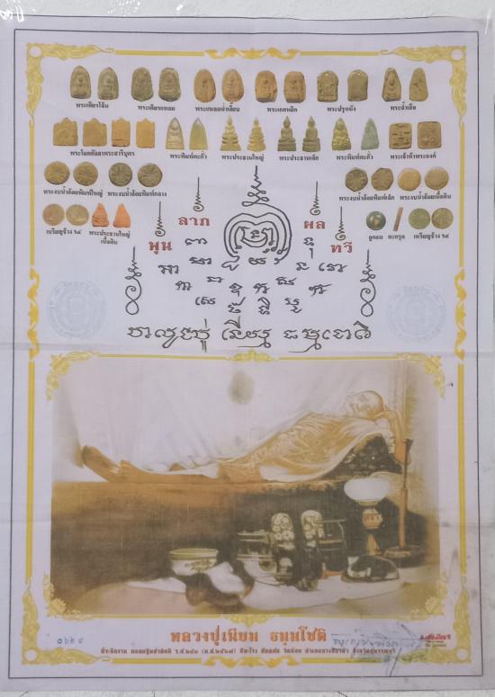 ผ้ายันต์หลวงพ่อเนียม วัดน้อย พุทธไสยาสน์ ปั๊มตราวัด |