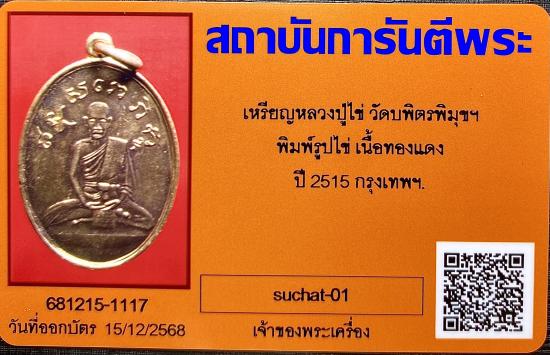 เหรียญหลวงปู่ไข่ วัดบพิตรพิมุขฯ เนื้อทองแดง ปี 2515 จ.กรุงเทพฯสภาพสวยครับ