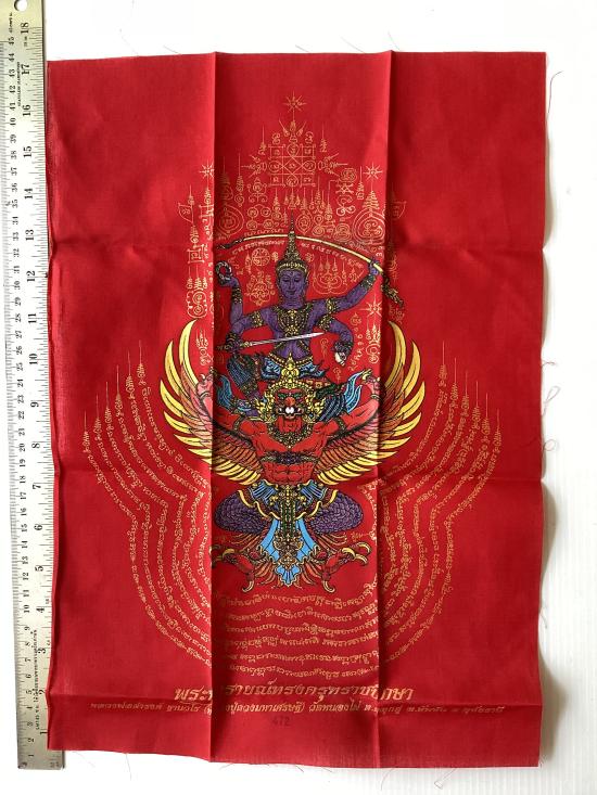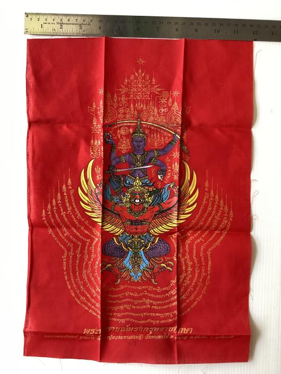 ผ้ายันต์ พระนารายณ์ทรงครุฑราชปักษา รุ่นดวงมหาเศรษฐี หลวงปู่ดวงเศรษฐี ฐานวโร วัดหนองไผ่ จ.อุทัยธานี สีแดง ขนาด A3 ( 11.5 นิ้ว x 16.5 นิ้ว) |