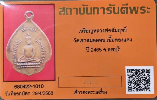 เหรียญพระพุทธ หลวงพ่อสัมฤทธิ์ (บัวสิบเอ็ด) พระอุปัชฌาย์ก๋งเสก วัดเขาสมอคอน จ.ลพบุรี ปี 2465 หายากครับ พร้อมบัตรรับรอง