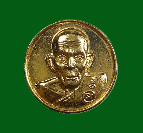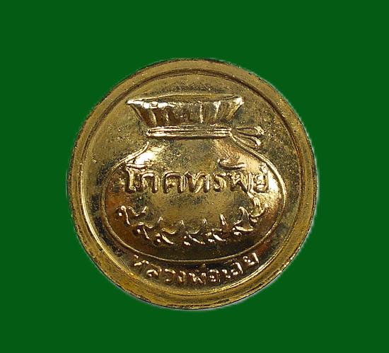 เหรียญเม็ดกระดุมโภคทรัพย์ 9/7 ตัว หลวงพ่อเอีย วัดบ้านด่าน จ.ปราจีนบุรี ปี 2518 เนื้อกะไหล่ทอง ผิวสวยเดิมตามรูป พระเก็บเก่าไม่ผ่านการใช้
