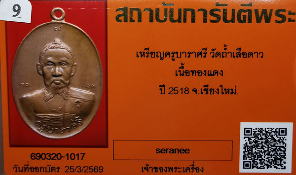 เหรียญครูบาราศรี วัดถ้ำเสือดาว เนื้อทองแดง จ.เชียงใหม่ + บัตรG-pra สภาพสวยเดิมค่ะ สภาพตามรูปทุกประการค่ะ