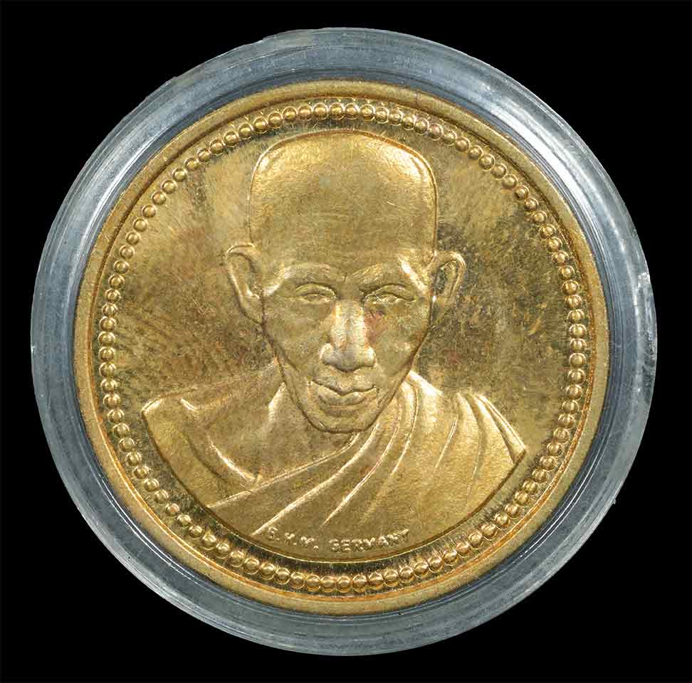 +++ เหรียญ ม.ต. เสาร์ห้า หลวงพ่อเกษม เขมโก รุ่นเสาร์ห้ามหามงคล (บล็อกเยอรมัน) เนื้อทองแดงขัดเงาพิเศษ พิธีอธิษฐานจิตปลุกเสก วันเสาร์ 30 เมษายน 2537 หลวงพ่อเกษม เขมโก ได้อนุญาตให้จัดสร้างเป็นกรณีพิเศษ โดยอนุญาตให้เป็นภาษาไทยและอังกฤษ ซึ่งแสดงถึงความตั้งใจในการจัดสร้างวัตถุมงคลชุดนี้ เหรียญรุ่นนี้เป็น (บล็อกนอก) ประเทศเยอรมันนี สุดยอดปฏิมากรรมของโลก ล้ำหน้าด้วยเทคโนโลยีใหม่สุด ด้วยรูปแบบที่สวยงาม ทั้งนี้เพื่อสู่ความเป็นเลิศในการสร้างเหรียญ ผลิตและออกแบบโดยโรงกษาปณ์ของรัฐบาลประเทศเยอรมัน ซึ่งเป็นปฏิมากรรมชิ้นโบแดงชิ้นแรกของยุโรป ที่นำมาสู่ประเทศไทยเป็นครั้งแรก จัดสร้างโดยสำนักสุสานไตรลักษณ์ จ.ลำปาง หลวงพ่อเกษม เขมโก