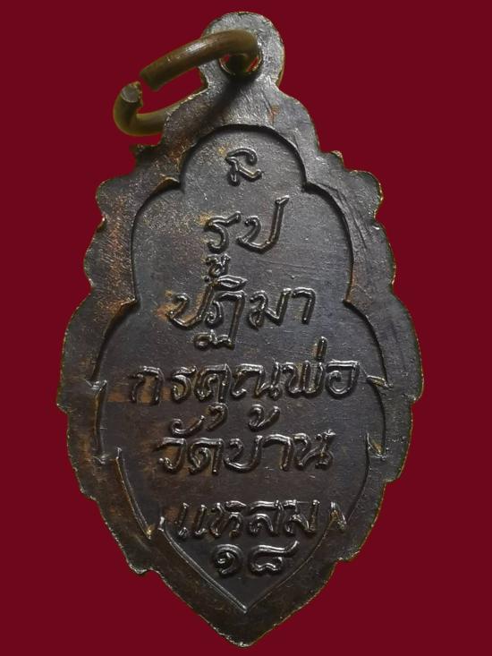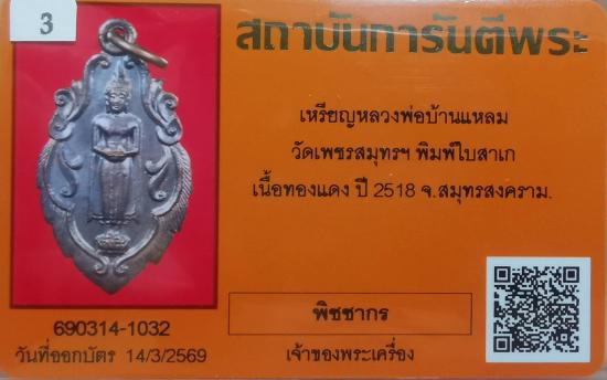 เหรียญ ลพ.บ้านแหลม วัดเพชรสมุทรฯ พิมพ์ใบสาเก เนื้อทองแดง ปี2518 จ.สมุทรสงคราม พร้อมบัตรรับรอง