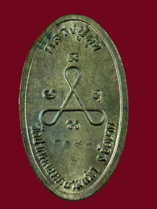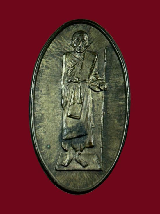 -วัดใจเคาะเดียวแดง-เหรียญยืนถือไม้เท้าหลังยันต์สามรูปไข่แบบไม่มีหูห่วง หลวงปู่ศุข วัดปากคลองมะขามเฒ่า จ.ชัยนาจ เนื้อนวะ