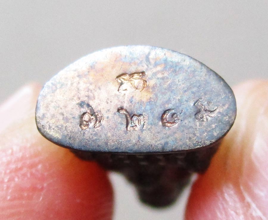 ใต้ฐานพระกริ่งปิดด้วยแผ่นเงิน