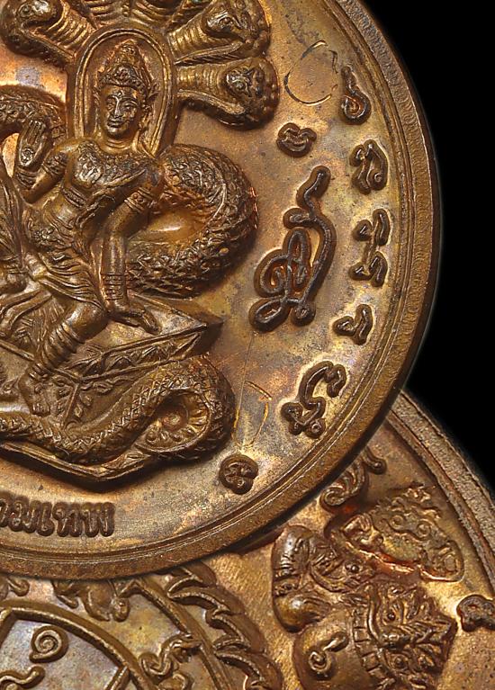 เหรียญเทวฤทธิ์บาตรน้ำมนต์ สุริยัน-จันทรา วัดพุทไธศวรรย์ ปี ๒๕๔๗ เนื้อทองแดง พิมเล็ก มีจาร แดง120