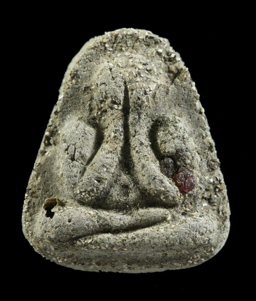 พระปิดตาวัดสำนักกะท้อน เนื้อผงธูป ฝังพลอยเสก