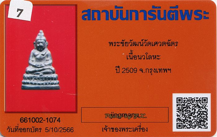 พระชัยวัฒน์ วัดเศวตฉัตร รุ่นแรก ปี 2509 เนื้อนวโลหะ [เคาะเดียวครับ]