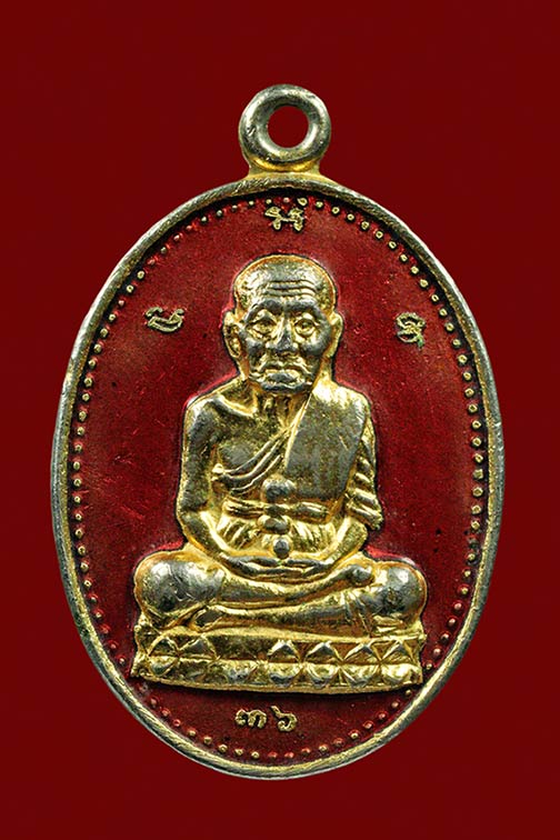เหรียญ กระหลั่ยทองลงยาแดง หลวงปู่ทวด ลงยา หลังช้างสามเศียร ปี 36 อ.นองปลุกเสก
