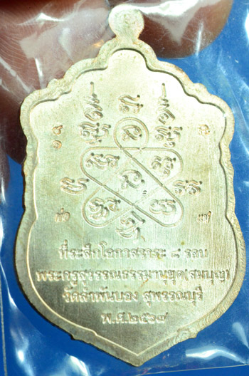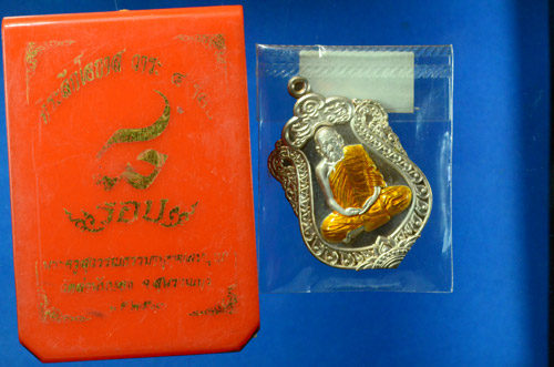 เหรียญเสมา8 รอบ เลข 61 หลวงพ่อสมบุญ วัดลำพันบอง เนื้อทองแดงอาบเงิน ลงยาจีวร จ.สุพรรณบุรี พร้อมกล่องเดิม สวยครับ