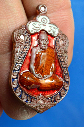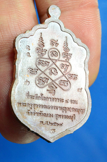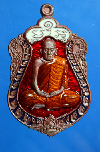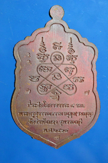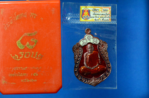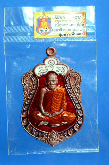 เหรียญเสมา8 รอบ เลข 47 หลวงพ่อสมบุญ วัดลำพันบอง จ. สุพรรณบุรี เนื้อทองแดงเถื่อน คุ้ยพื้นแดง ลงยาจีวร ซุ้มขาวพื้นแดง พร้อมกล่องเดิม