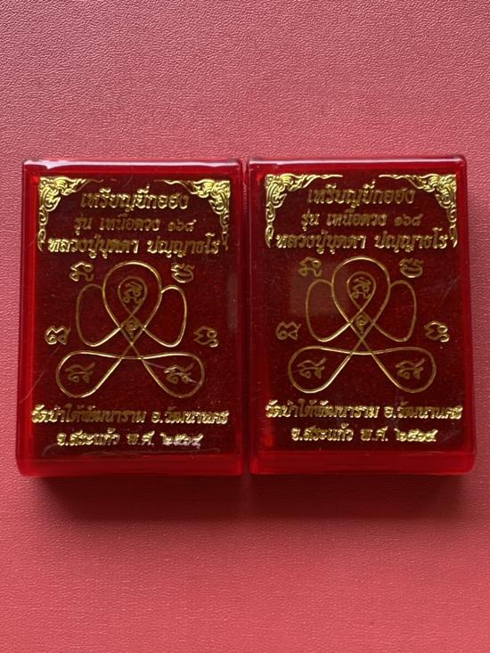 เคาะเดียวแดง หลวงปู่บุดดา ยี่กอฮงรุ่น เหนือดวง 2องค์ เนื้อ ทองแดงลงยาดำ หน้ากากฝาบาตร |