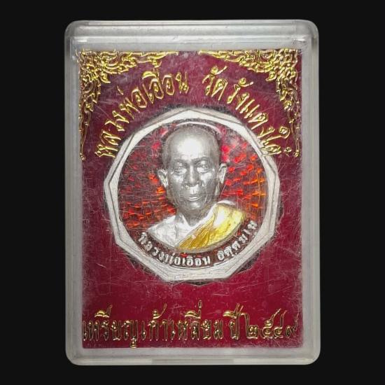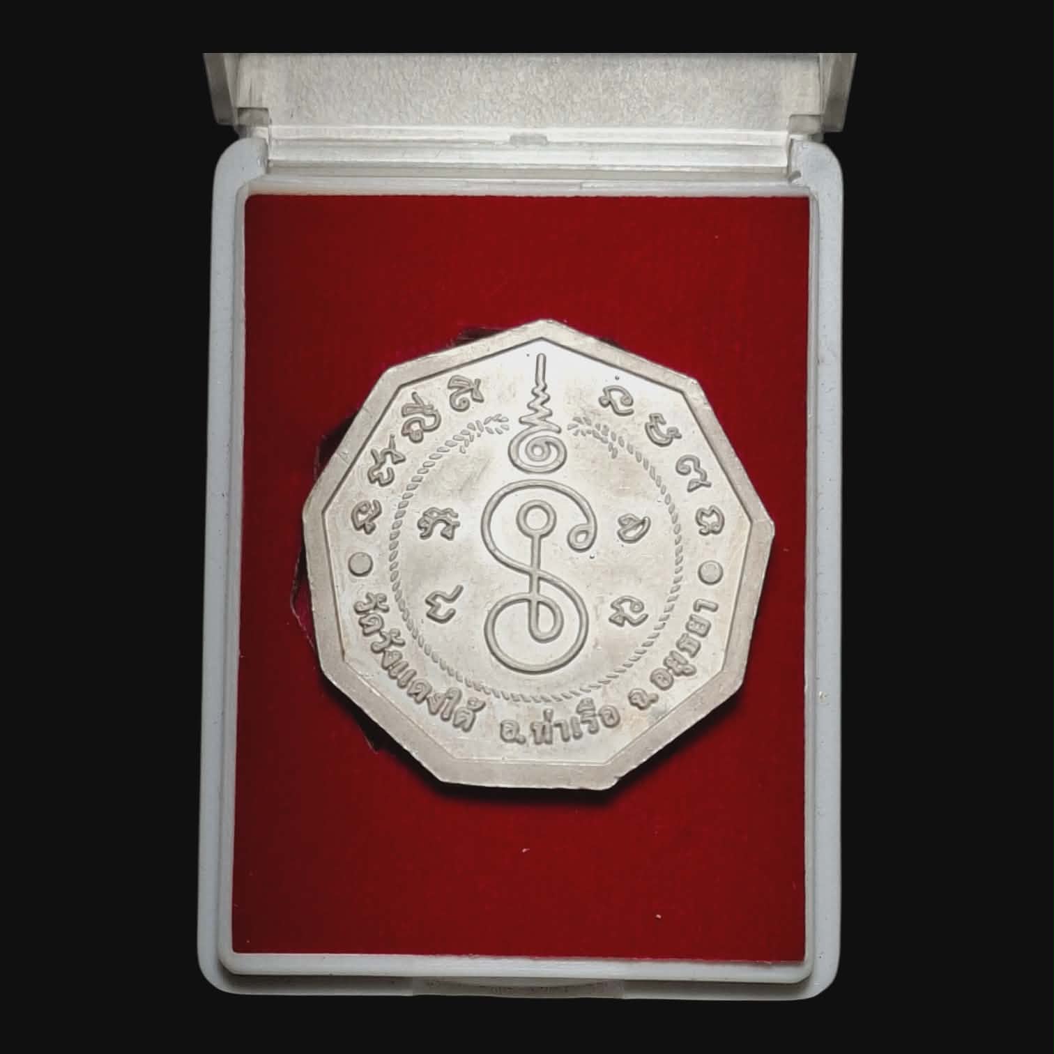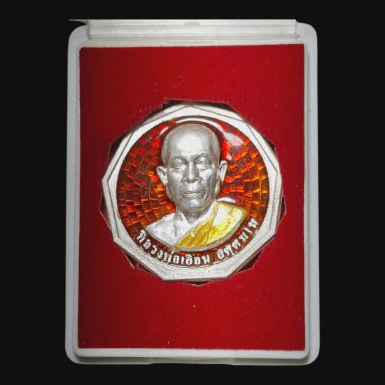 เหรียญเก้าเหลี่ยมเนื้อเงินลงยาแดง หลวงพ่อเอื้อน วัดหนามแดงใต้