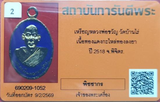 เหรียญหลวงพ่อขวัญ วัดบ้านไร่ เนื้อทองแดงกะไหล่ทองลงยาน้ำเงิน ปี2518 จ.พิจิตร พร้อมบัตรรับรอง