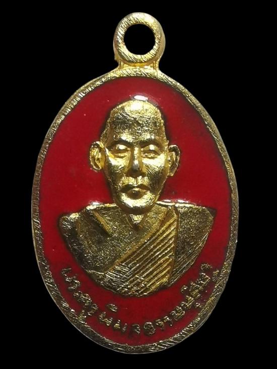 เหรียญหลวงพ่อขวัญ วัดบ้านไร่ เนื้อทองแดงกะไหล่ทองลงยาสีแดง ปี2518 จ.พิจิตร พร้อมบัตรรับรอง