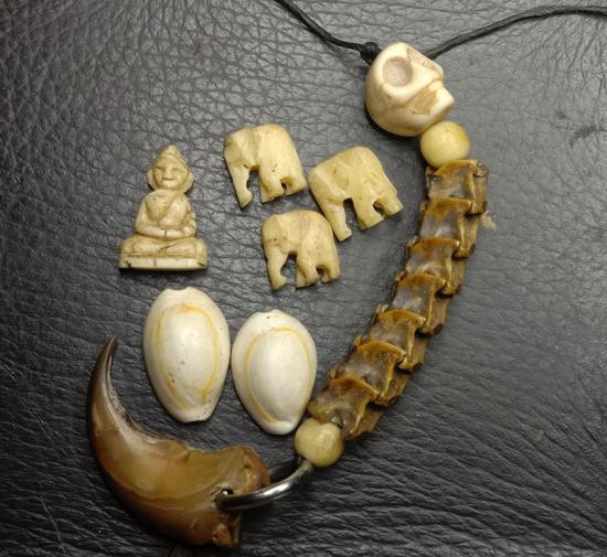 ช้างเป็น งาแกะค่ะ เล็บหมี กระดูกงู พระพุทธแกะ เบี้ย |