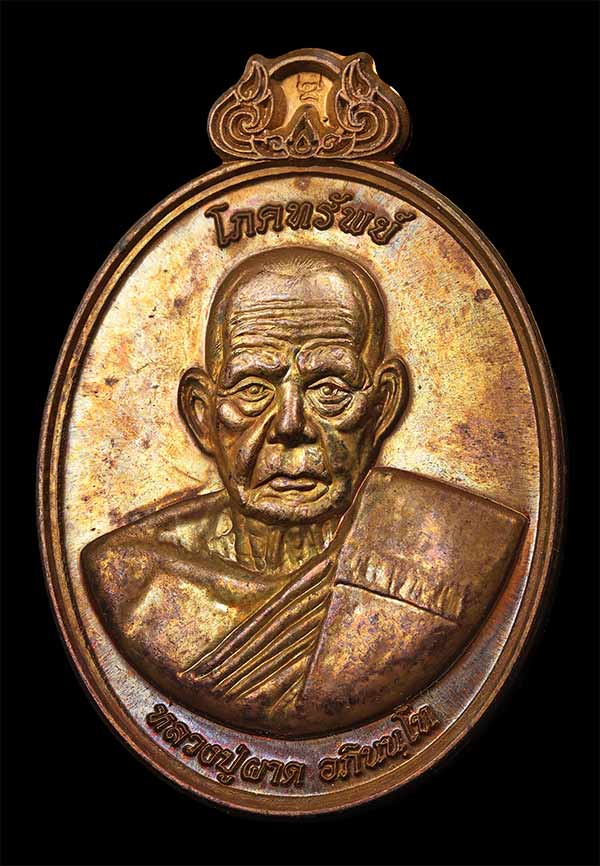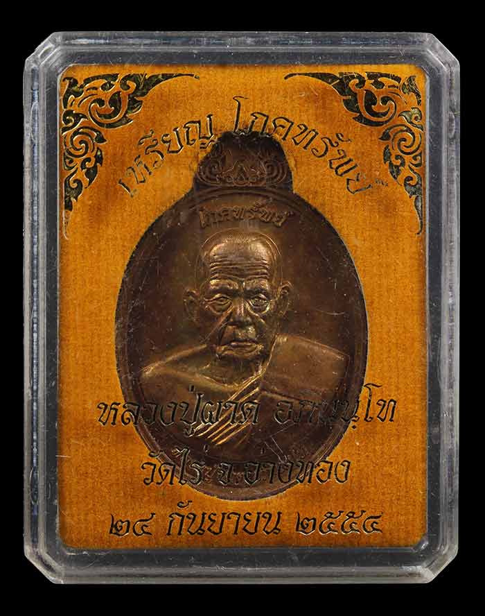 *วัดใจ* เหรียญโภคทรัพย์ หลวงพ่อผาด วัดไร่ พิมพ์หลังครุฑ เนื้อทองแดง ปี2554 จ.อ่างทอง พร้อมกล่อง |