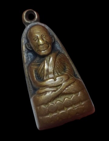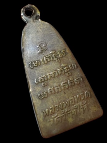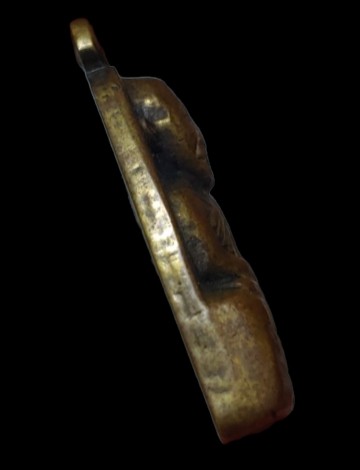 พระหลวงพ่อทวด พิมพ์หลังหนังสือเล็กมีหู เนื้อทองเหลืองรมดำ ปี2508
