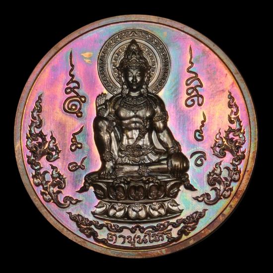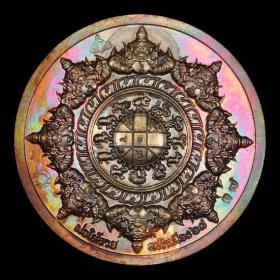 เหรียญบรมครูตาขุนโหร หลักเมือง ๖๘ รุ่น "พ่อให้รวย" นครศรีธรรมราช จัดสร้างโดย หมึก ท่าพระจันทร์ เนื้อทองแดงผิวรุ้ง สอดไส้ชนวน หมายเลข ๓๗ (เลขสองหลัก) พร้อมกล่องเดิม ปลุกเสก ๔ วาระ พิธีใหญ่แห่งปี เกจิดังทั่วประเทศร่วมปลุกเสก