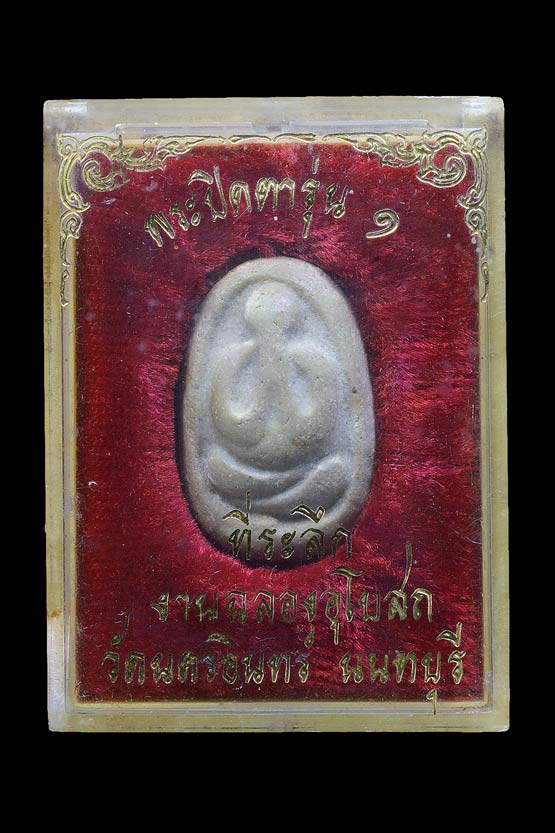 พระปิดตา พิมพ์ใหญ่ ( เนื้อผงสีขาว ) ที่ระลึกงานฉลองอุโบสถ วัดนครอินทร์ จ.นนทบุรี ปลุกเสกโดย หลวงพ่อคูณ พ.ศ.2527 ( กล่องเดิม )