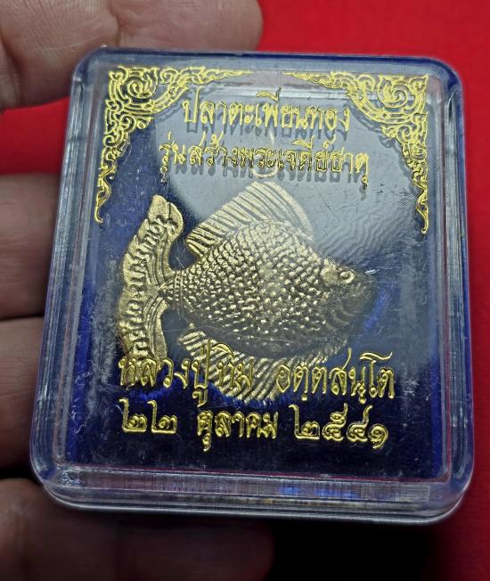 ปลาตะเพียนหลวงปู่ทิม วัดพระขาว จ.อยุธยา สร้างปี พ.ศ.2541ตัวใหญ่ กว้าง 3.7 cm สูง 3.7 cm น้ำหนัก 16 กรัม พร้อมกล่องเดิมครับ