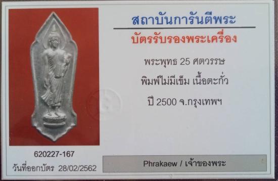 พระพุทธ 25 ศตวรรษ พิมพ์ไม่มีเข็ม เนื้อตะกั่ว ปี 2500 มาพร้อมตลับเงินแกะลายยกซุ้ม กาบเชิง งานสั่งทำหนา ๆ สวย ๆ และบัตรรับรองพระแท้ จาก G สภาพตามรูป ส่งฟรีทั่วไทย รับประกันตามกฎครับ