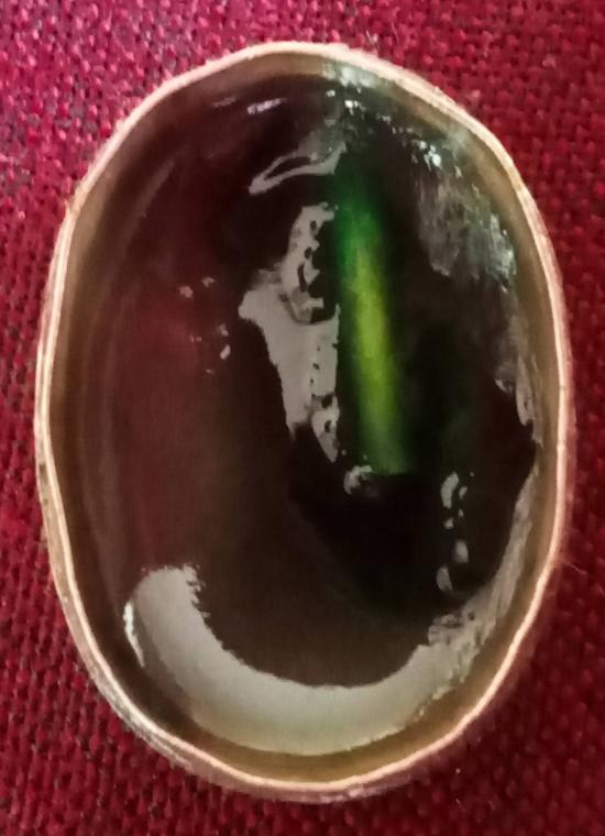 ตลับสีผึ้งไม่ทราบที่ ในตลับมีสีผึ้งสีเขียวไขใส และตะกรุด ตลับเป็นเงินเก่า งานเซี่ยงไฮ้ ใต้ตลับตอกตราร้านทองที่ทำ 2 ตรา ขนาดประมาณ 1 นิ้ว น.น.ประมาณ 6.5 กรัม สภาพตามรูป ส่งฟรีทั่วไทย รับประกันตามกฎครับ