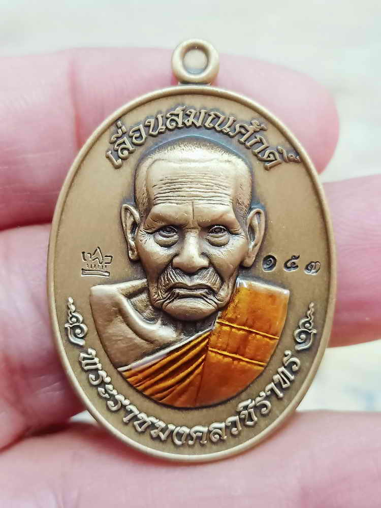 วัดใจ 100 เหรียญเลื่อนสมณศักดิ์ 111 ปี หลวงปู่บุดดา วัดป่าใต้พัฒนาราม จ.สระแก้ว ทองทิพย์ซาติน ลงยาจีวร หมายเลข 153 กล่องเดิม