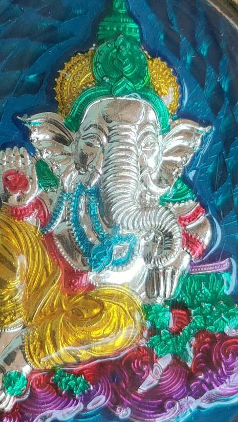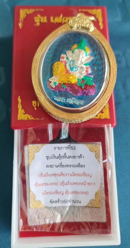 พระพิฆเนศ รุ่น"เสวยสุข"ปี68 ปางเสวยสุข เทวสถานอุทยานพระพิฆเนศ นครสวรรค์ เนื้อชุบเงิน คุ้ยพื้นลงยาฟ้า ลงยาเครื่องทรง หลังยันต์โอม หมายเลข ๒๙ พร้อมกล่อง สีประจำคนเกิดวันศุกร์ เสริมโชคลาภ และความร่ำรวย