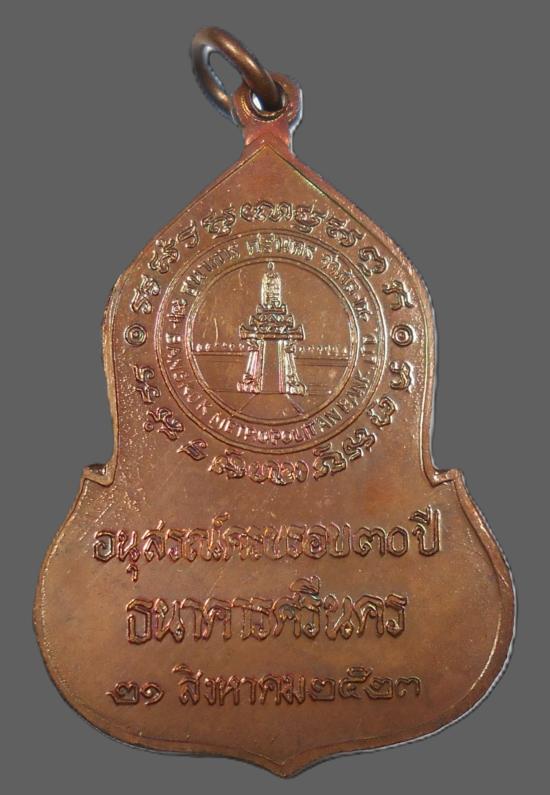 เหรียญพระแก้วศรีนคร ปี 2523 เนื้อทองแดงรมน้ำตาล สร้างในวาระครบ 30 ปี ของธนาคารศรีนคร (ปลุกเสกพิธีใหญ่อาทิ หลวงปู่ดู่ วัดสะแก, หลวงปู่โต๊ะ วัดประดู่ฯ, หลวงปู่ดูลย์ วัดบูรพาราม ฯลฯ) พระสภาพสวยเดิมๆ