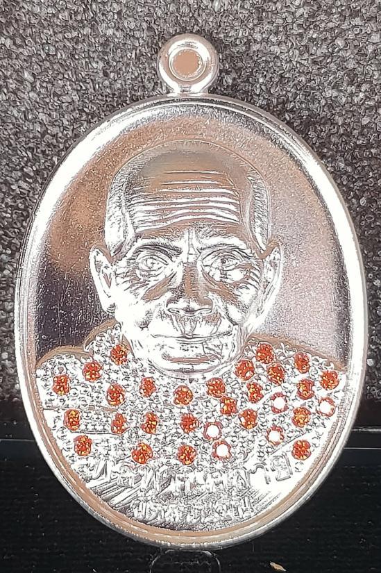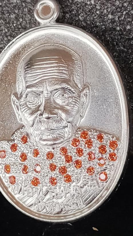 เหรียญพ่อท่านคล้าย วาจาสิทธิ์ รุ่นอริยสงฆ์แดนใต้ วัดสวนขัน จ.นครศรีธรรมราช เนื้อชนวนชุบเงิน ฝังพลอยส้มเต็มห่มคลุม(30เม็ด) หลังยันต์ เลข ๒๓ พร้อมกล่อง เหรียญสวยมากครับ เลขโซนวันเกิด ปีเกิด ขาววิ้งๆยังกะเนื้อเงินใช้แทนได้เลยคับ