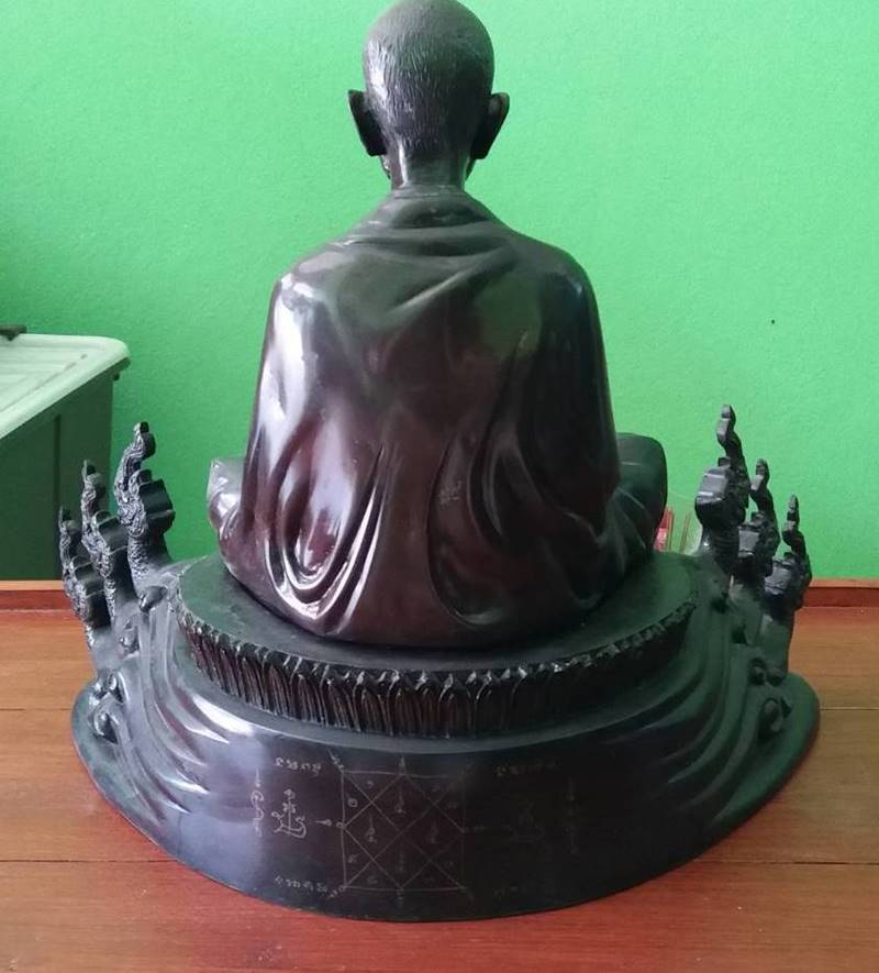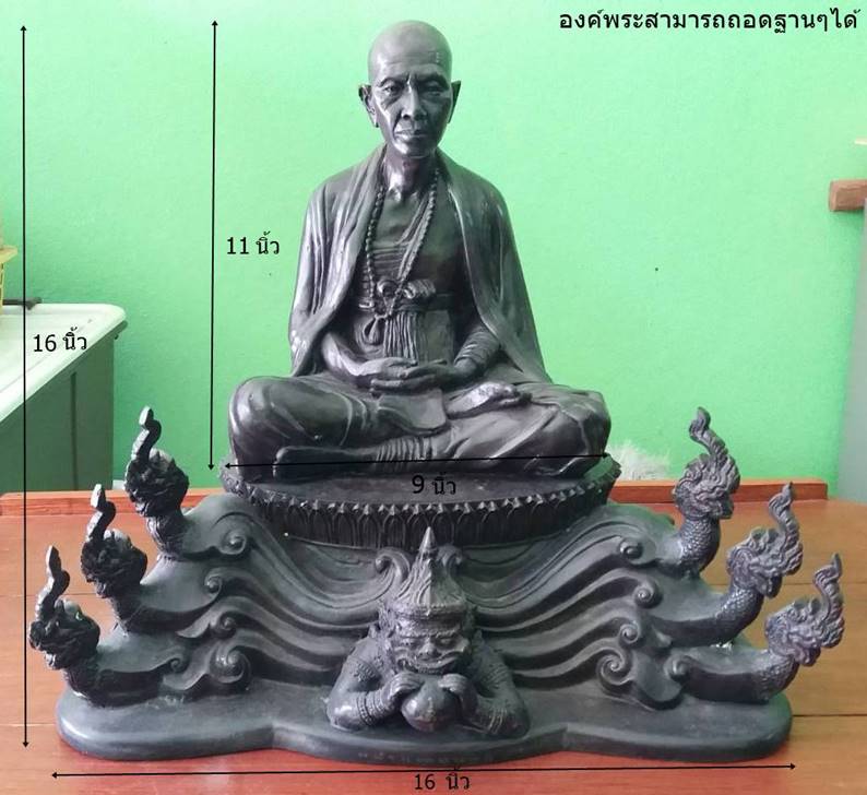 รูปหล่อครูบาศรีวิชัยไม้ทราบรุ่น หน้าตักพระกว้าง9นิ้ว ฐานล่างกว้าง16นิ้ว องค์พระสูง11นิ้ว ความสูงรวมฐาน16นิ้ว พระบ้านเหมาจำนวนการสร้างน้อยองค์พระมีน้ำหนักพอสมควรครับ
