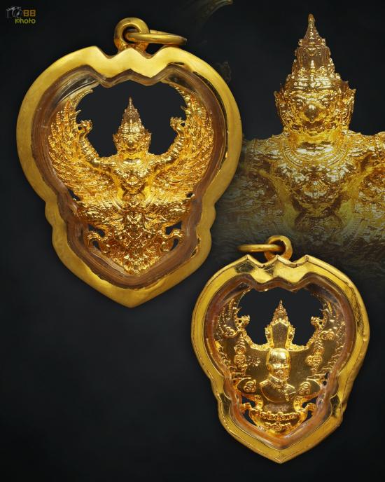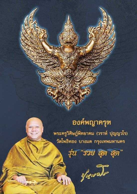 องค์พญาครุฑ รุ่นรวยสุดสุด ปี2563 เนื้อกะไหล่ทอง เลี่ยมทองคำ วัดโพธิทอง