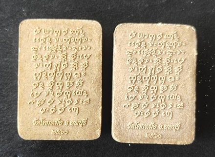 จารึกเป็นอักขระภาษาอินเดียโบราณ เป็นยันต์ยอดเกศ หรือยันต์ร้อยช่อง ตามตำรับโบราณ ยันต์นี้ทรงอานุภาพทางป้องกันและสยบคุณไสย คุณผี คุณคน ทุกชนิด ตลอดจนเป็น มหาอำนาจ มหาอุต ขจัดปัดเป่าอุปสรรคต่างๆ เป็นยันต์ที่มีอิทธิฤทธิ์สูงยิ่ง ใช้ได้ร้อยช่องร้อยประตูตามแต่อธิษฐานแล..