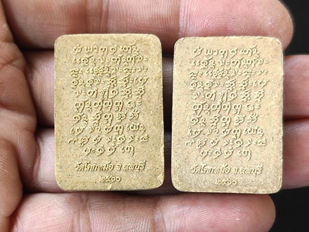 ซ้าย-ขวา 4 คำ เป็นอักขระภาษาอินเดียโบราณอ่านว่า อะ โร คะ ยา แปลว่า " ความไม่มีโรค "