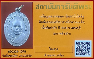เหรียญแจกแม่ครัว หลวงพ่อแดง พิมพ์บ่ารางกลาก 7ติ่ง อัลปาก้า สภาพล้างผิว มีบัตรรับรองจีพระ เคาะเดียว |